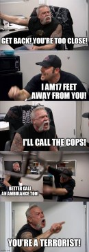 Fear, if allowed to proliferate, will be the disease that kills America.  It will not be a virus.  The basic premise of the above meme, inspired by the experience of a friend of mine, is already taking place.  Let’s all just calm down.